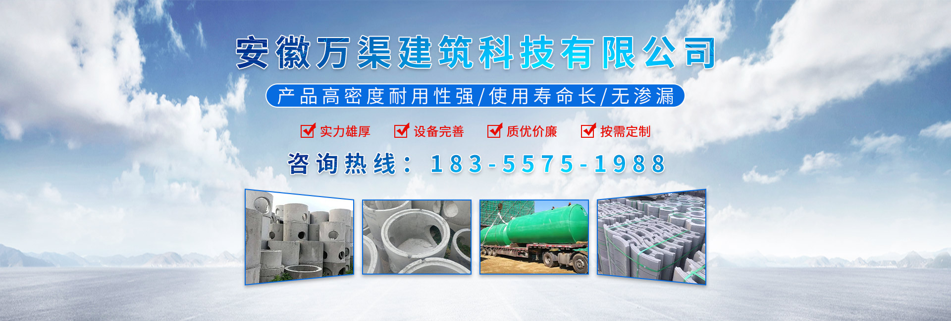 黃山市萬順建筑科技有限公司是集研發(fā),生產(chǎn)制造,市場(chǎng)推廣為一體的綜合性企業(yè)。公司主要經(jīng)營(yíng)環(huán)保型預(yù)制鋼筋混凝土裝配式組合型檢查井和蓄水裝置等城建配套產(chǎn)品。產(chǎn)品生產(chǎn)過程采用獨(dú)特的生產(chǎn)工藝,機(jī)械化流水作業(yè)。產(chǎn)品大規(guī)模生產(chǎn),生產(chǎn)效率高,耗能少,成本低,產(chǎn)品使用壽命長(zhǎng)、免維護(hù)、無滲漏、無污染,符合“綠色環(huán)保,低碳節(jié)能”的發(fā)展要求,是傳統(tǒng)磚砌井池的理想替代產(chǎn)品。